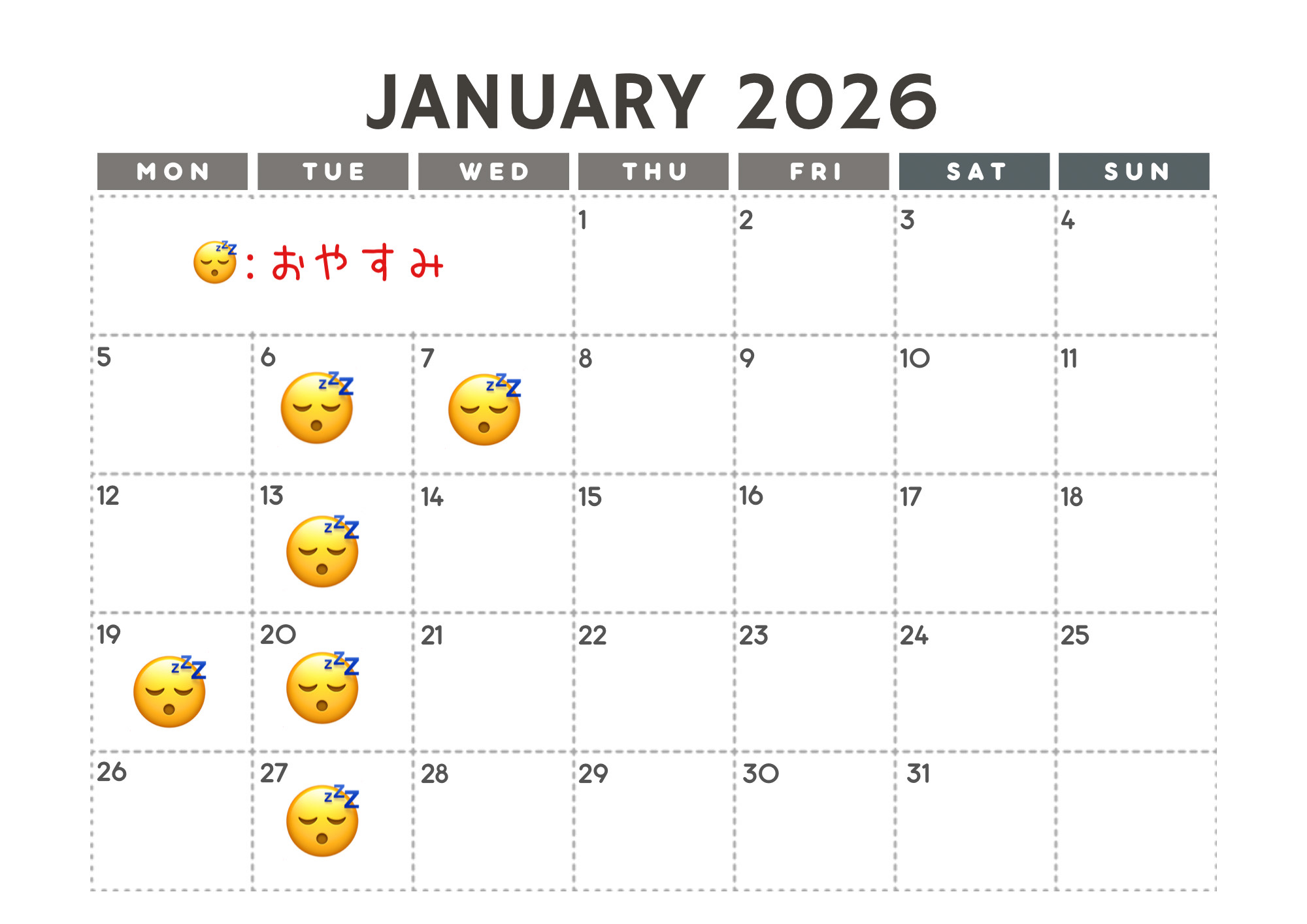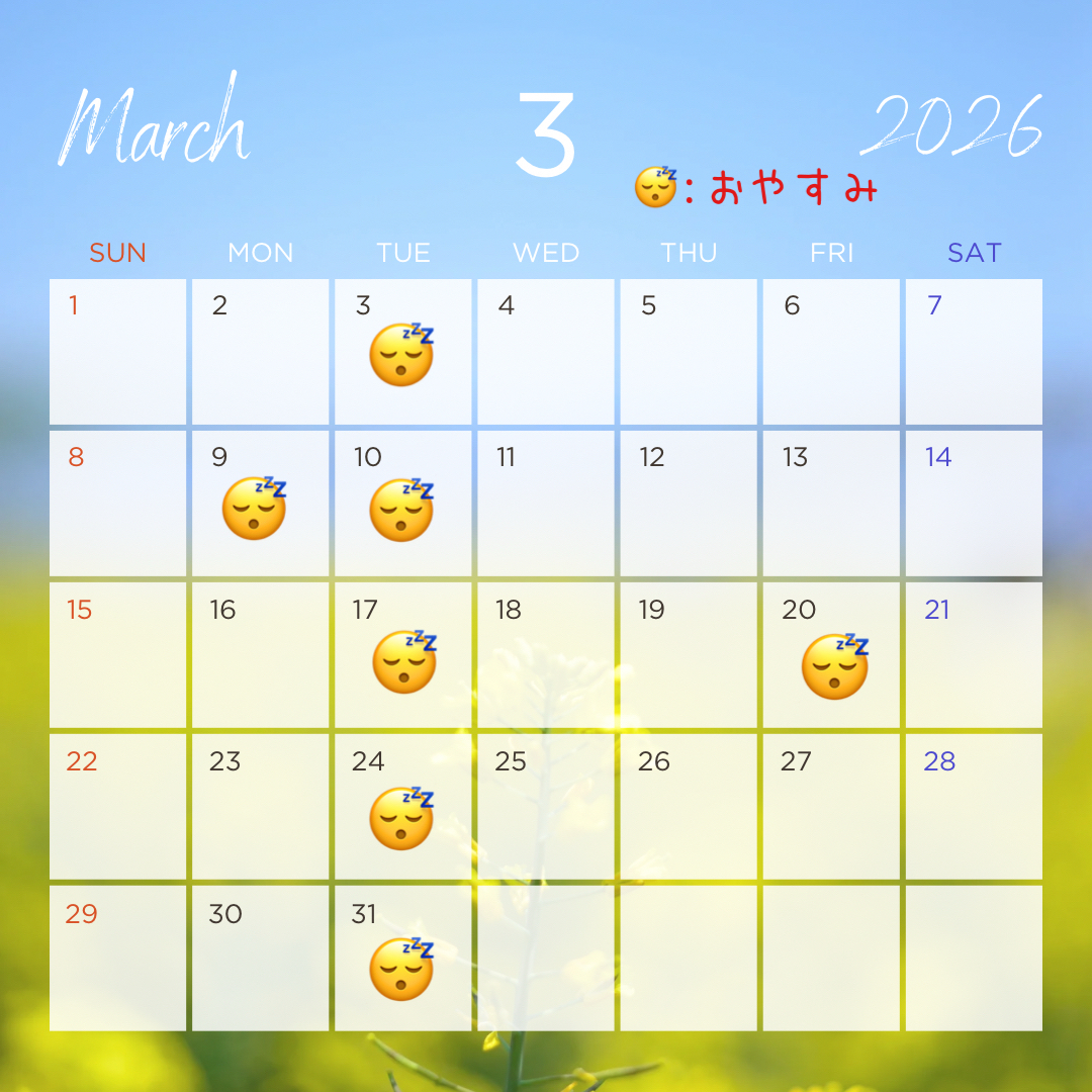 ※以下リンクにて、毎月の定休日について詳しくご案内させていただいております。